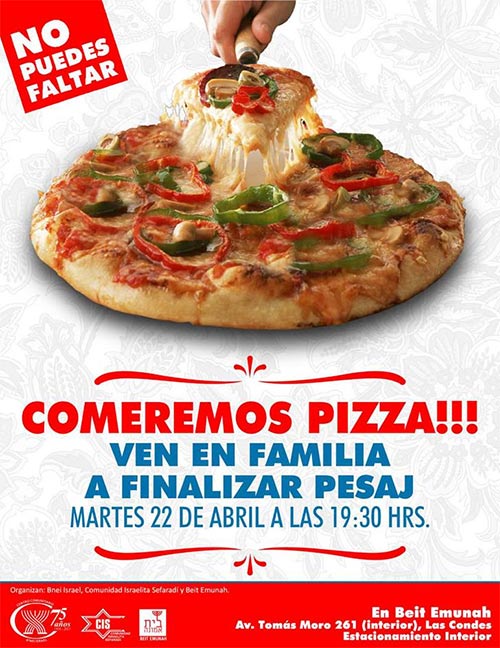 Les paso varios datos importantes para que tengan en cuenta: Servicios de Pesaj: · lunes 14 : 19:30 horas en Comunidad Sefaradí |