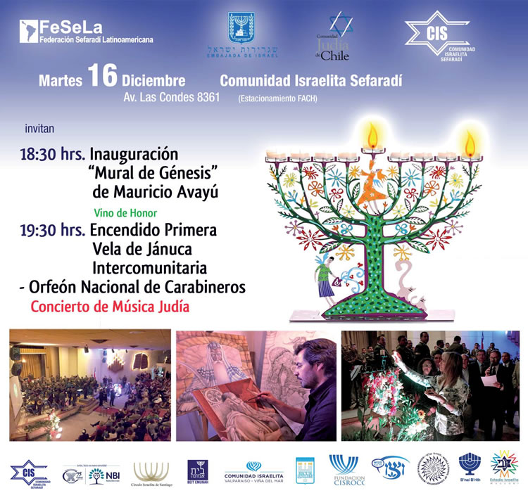 Queridos amigos, este martes 16, nuevamente la Comunidad Israelita Sefaradí, se vestirá de gala, para recibir al tan merecidamente prestigiado Orfeón de Carabineros de Chile. En el marco de nuestra tradicional celebración de Jánuca, nuevamente tendremos el privilegio de escuchar al Orfeón de Carabineros, interpretando música judía. Sin lugar a dudas, el sólo mencionar a nuestros visitantes, nos garantizará un lleno total, recibiendo no sólo a nuestros socios, sino que a integrantes de todas nuestras comunidades hermanas.