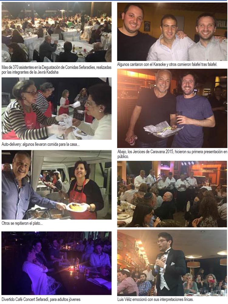 Para culminar, llegó la Nochada Sefaradi que reunió a 250 personas. Emocionante encuentro de los Jercices de Caravana que tanto hicieron reír a los socios en las Semanas Sefardíes durante décadas, se homenajeó a cada uno de ellos, mientras nos divertíamos con la 1ra. Presentación en público de la nueva generación de los Jercices 2015. Finalizamos esa noche con los músicos de Jazz Clezmer Ban, bailando y cantando junto a Ester Acunis.