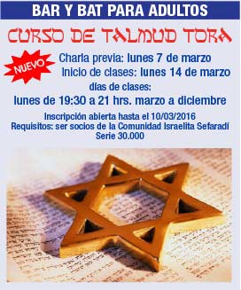 Y atención porque se inician también las clases de Talmud Tora para Adultos, para que nadie se quede con las ganas de hacer su Bar y Bat Mitzvá.
