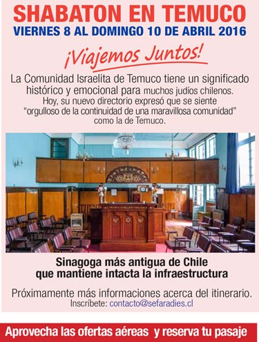 El 8 de abril nos vamos al Shabaton en Temuco y a festejar con ellos, en una fiesta de Gala los primeros 100 años de esa Comunidad.