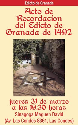 Jueves 31 Conmemoración Edicto de Granada. 19:30 hrs.- Sinagoga Maguen David