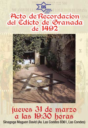 Jueves 31 Conmemoración Edicto de Granada. 19:30 hrs.- Sinagoga Maguen David