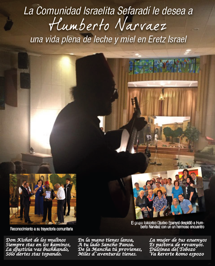 Cuando estemos leyendo este Jadashot estaremos también despidiendo a nuestro querido Jazán Humberto Narváez, quien hará Aliá en 10 días más.