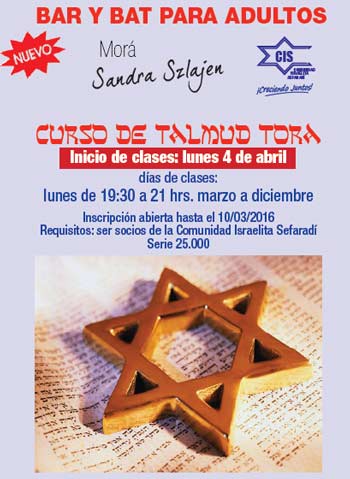 Les recuerdo que ya comenzaron las clases de Kabalah con el Prof. Leonardo Navarro, las clases de Rikudim con Yanina Gloger, la próxima semana comenzamos con Talmud Tora para adultos con Sandra Szlajen y las clases de inglés con Gabriela Lolas. En mayo, después de Pesaj comenzamos con el taller de Pintura con Andrea Stark y de Vitromosaico con Tauba Muller .
