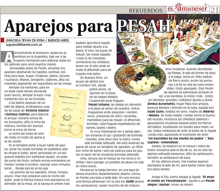 Esta semana: 29 de Adar II al 6 de Nisan- Viernes 8 al 14 de Abril de 2016 |