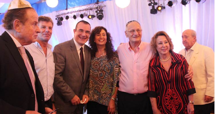 De izq. a derecha Marcos Kaplun, presidente de CLAM ; Marcelo Bater, Directivo Comunidad Judía de Paraguay; Rabino Carlos Tapiero, de Israel; Kelly Armoza, Directora Ejecutiva Comunidad Israelita Sefaradí; Rody Paley, Directivo Sociedad Hebraica Argentina; Mirtha Priewer de Kaplun, Juan Imel, ex Presidente Hebraica Argentina