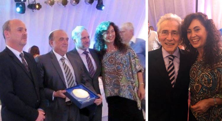 Kelly hizo entrega de Galvano en nombre de la Comunidad Sefaradí de Chile, al presidente de Hebraica. Sr. Diego Dinitz, junto al Secretario General Sr. Gustavo Segalis, con motivo del 90º aniversario de la institución argentina. |