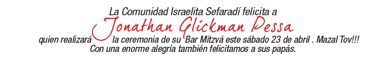 Sábado 23 Bar Mitzva Jonathan Glickman Pessa