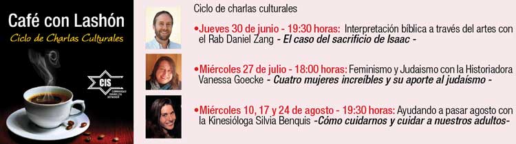 En otro orden de cosas, en junio comenzaremos Las charlas con café - Café con Lashón – organizado por el Comité de Cultura.
