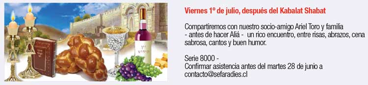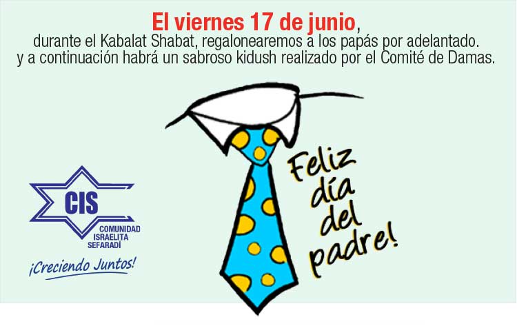 Para finalizar les hago una invitación muy especial para el próximo Kabalat Shabat, día en que se lo dedicaremos a todos los Padres de la Sefaradí y los regalonearemos con un sabroso Kidush organizado, por nuestro Comité de Damas.