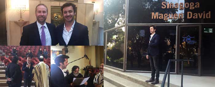 En la Sefaradí recibimos la visita del equipo de producción de TVN y al destacado actor Benjamín Vicuña. Se filmaron imágenes dentro y fuera de la Sinagoga para una serie televisiva que se estrenará próximamente y tendrá como título “Casi un Angel”. Aquí van unas imágenes como anticipo. Cabe destacar que no solo se mantuvo el respeto correspondiente al ámbito sinagogal, sino que es una nueva oportunidad para mostrar nuestra Comunidad y la apertura del judaísmo a nuestra sociedad.