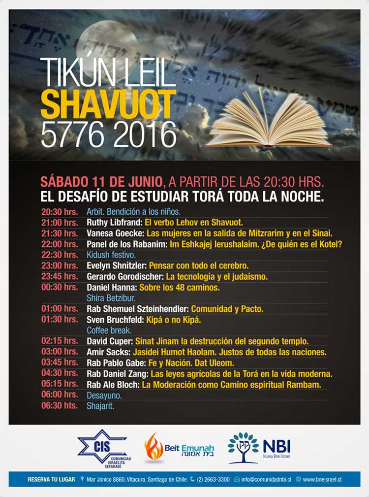 Domingo 12 20:30 hrs. Shavuot