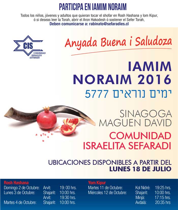 CIS Comunidad Israelita Sefaradí, Av. Las Condes 8361 222 02 03 30 contacto@sefaradies.cl |