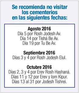 Me despido recordándoles que falta un poco más de dos meses para Iamim Noraim y ya se ve como de a poco se van ocupando los espacios para Yom Kipur. Por ello, como en años anteriores, los invito a pasar por la oficina de administración de la CIS. Visítennos y mientras se toman un cafecito o té podrán observar el plano de ubicaciones disponibles para Kipur – el evento comunitario más importante del año- Les recomiendo tomar sus reservas con tiempo para estar cerca, como siempre, de sus familiares y amigos.