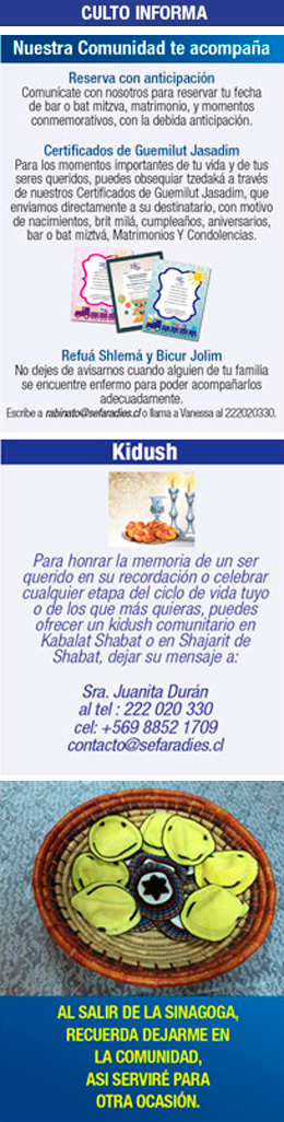 CIS Comunidad Israelita Sefaradí, Av. Las Condes 8361 222 02 03 30 contacto@sefaradies.cl |