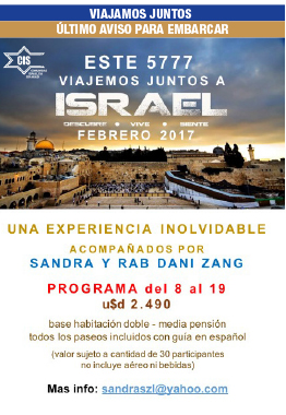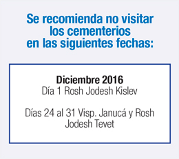 El próximo Viernes 9 y Sábado 10 de Diciembre 2016 : 10 al 16 Kislev |