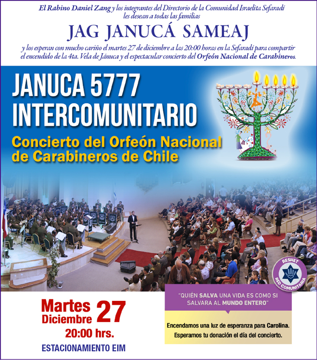 Martes 27 Janucá Intercomunitario - Concierto Orfeón Nacional de Carabineros