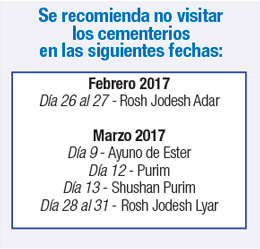 Este Viernes 10 y Sábado 11 de Febrero 2017: 15 al 21 Shevat