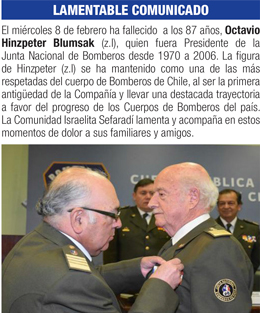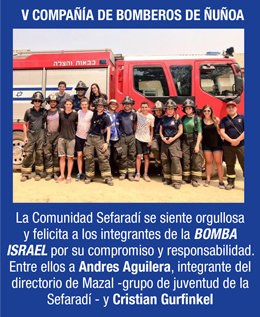 Finalmente, no podemos dejar de agradecer a todos quienes nos ayudaron: Miembros del Directorio, Personal Administrativo de la Comunidad, portería del EIM, a nuestros bomberos de la 5ta. Compañía -Bomba Israel- , representados en Cristian Gurfinkel Alvo, un joven voluntario al que todos conocemos en nuestra Comunidad, como también a unas preciosas niñitas llamadas Dalia Perek, Rebeca Vicuña, y las hermanas Sofi y Vicky Triguero, que gustosas nos ayudaron a colectar dinero, en alcancias en los jardines del estadio.