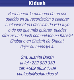 CIS Comunidad Israelita Sefaradí, Av. Las Condes 8361 222 02 03 30 contacto@sefaradies.cl |