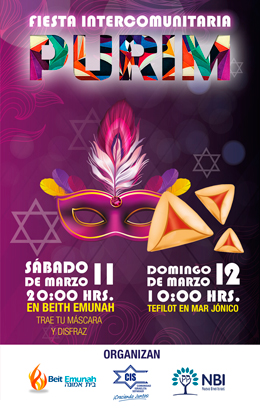 Domingo 12 Purim Intercomunitario – Tefilot 10:00 hrs.