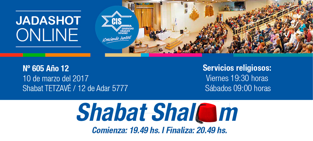 El próximo Viernes 17 Sábado 18 Marzo 2017: 20 al 26 Adar