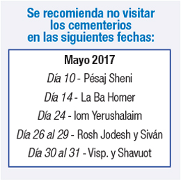El próximo Viernes 12 y Sábado 13 de Mayo 2017: 17 al 23 Iyar