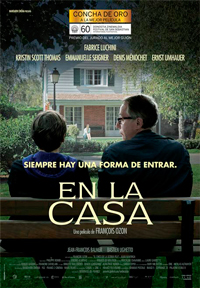 En “En la casa”, adaptación de la obra del dramaturgo español Juan Mayorga “El chico de la última fila”, François Ozon nos presenta al frustrado profesor de literatura y también frustrado novelista, Germain, marcando el paso, revisando y calificando los mediocres trabajos de sus alumnos, incapaces de redactar aceptablemente más de un par de líneas y cuyo mundo se reduce a internet, celulares y pizzas. Pero entre ellos encuentra uno notable, el de Claude García, una sutil crítica a la familia neurótica de clase media de uno de sus compañeros, pero que es también para él la familia deseada, la familia perfecta buscada, la familia correcta con sus pequeñas disfuncionalidades barridas bajo la alfombra, como es la costumbre de todos. Se trata de un trabajo voyerista e irónico, que atrapa al profesor, lo convierte en cómplice obsesivo de su alumno durante las sucesivas entregas o capítulos de los informes, hasta que realidad y ficción se confunden, se entremezclan, a medida que el profesor se va inmiscuyendo cada vez más en las peripecias dosificadas de su alumno. Gradualmente, nosotros, espectadores, entramos también en este juego voyerista.