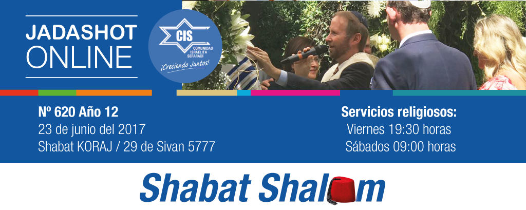 El próximo Viernes 30 de Junio Sábado 1ª de Julio de 2017: 7 al 13 Tamuz