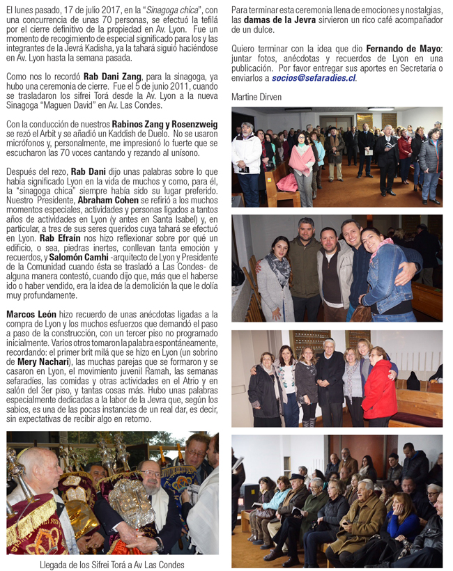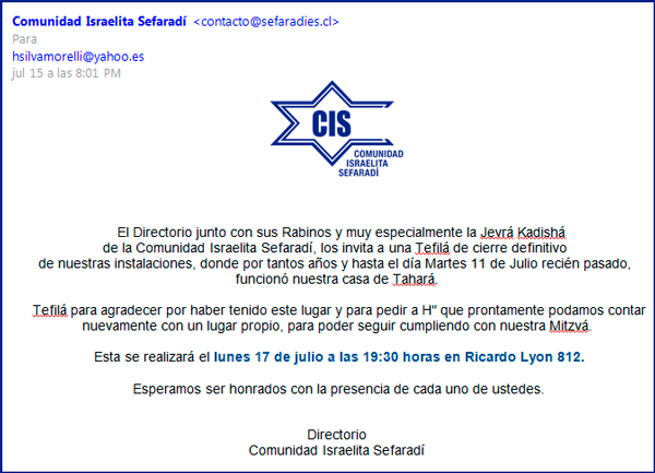 CIS Comunidad Israelita Sefaradí, Av. Las Condes 8361 222 02 03 30 socios@sefaradies.cl |