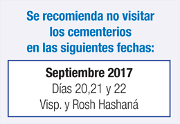 Este Viernes 25 Sábado 26 Agosto 2017: 4 al 10 Elul