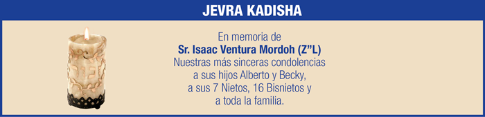 Esta semana, como la vida misma, hemos tenido de dulce y de agraz… Comenzamos la semana lamentando el sensible fallecimiento del Sr. Isaac Ventura Mordoh (Z”L). Nuestras más sinceras condolencias a la familia.