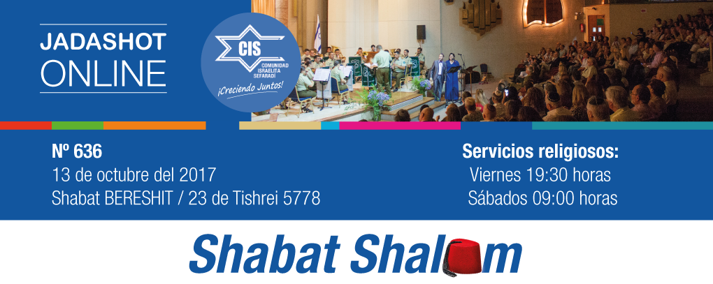 El próximo Viernes 20 Y Sábado 21 de Octubre de 2017: 1 al 7 Jeshvan