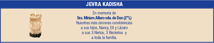 dedicaremos el Kadish de duelo, a la bendita memoria de las siguientes personas Z”L