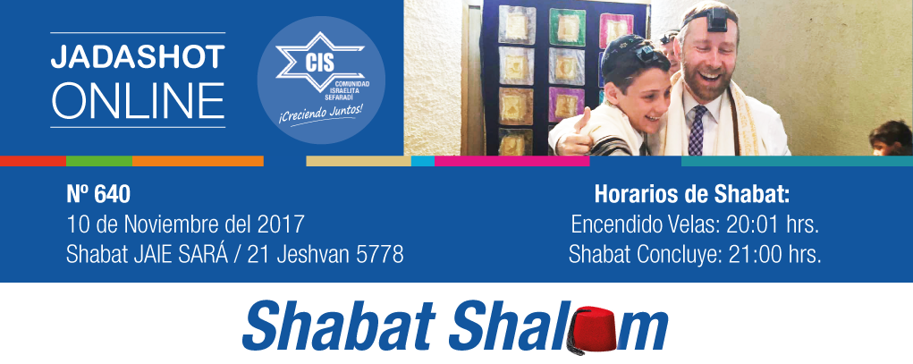 Este Viernes 10 y Sábado 11 de Noviembre de 2017 : 22 al 28 Jeshvan