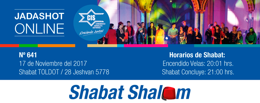 Este Viernes 17 Y Sábado 18 de Noviembre de 2017: 29 Jeshvan al 6 Kislev