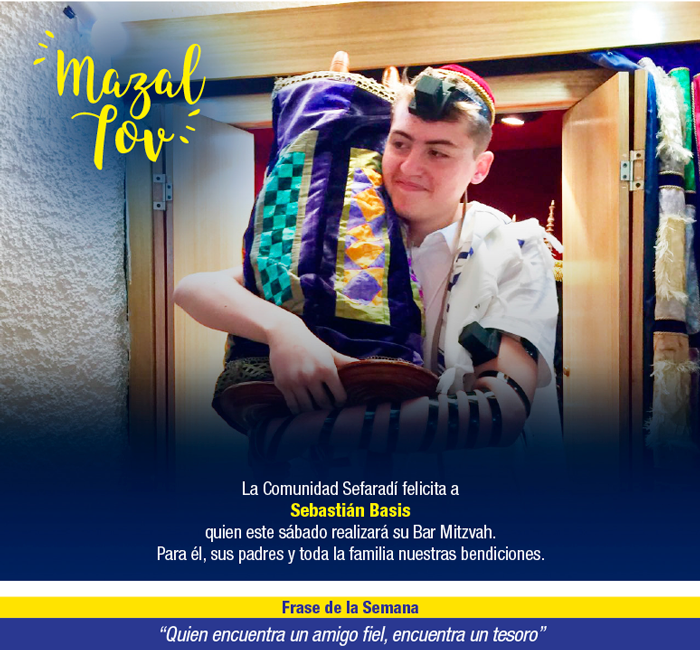 Y como la actividad, no se detiene, queremos felicitar a Sebastián Basis quien realiza su Bar Mitzvá este sábado junto a nosotros. Un abrazo para él , sus padres y nuestros saludos a toda su familia.