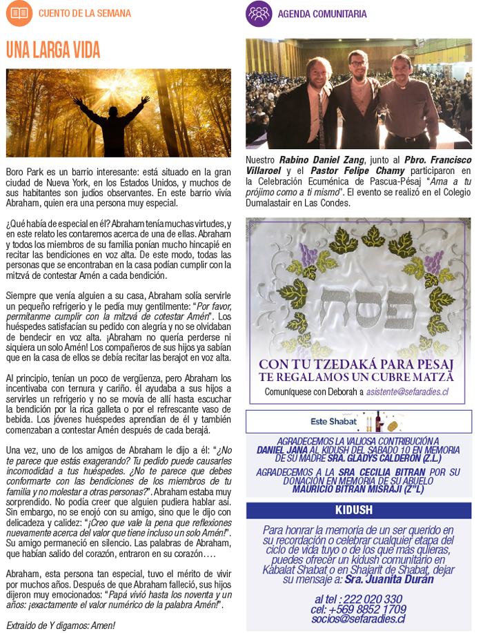 Este shabat previo al comienzo de una de las festividades más importantes de nuestro calendario, la festividad de Pesaj, es conocido como shabat hagadol, el gran sábado.