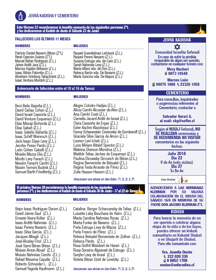 Si sabes de alguien que no está recibiendo el jadashot envíanos sus datos a socios@sefaradies.cl