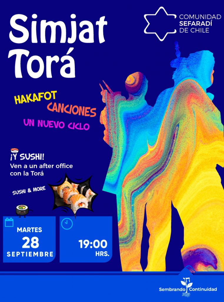 Simjat Torá en la Comunidad Sefaradí Más información e inscripciones: asistente@sefaradies.cl Martes 28 Septiembre 19.00…