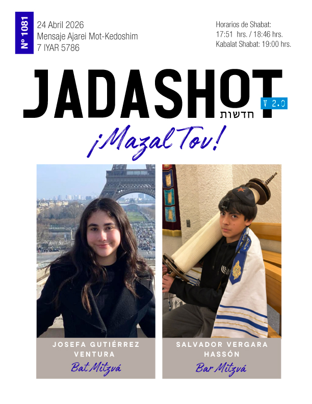 Mensaje Tzva / 9 Nisan 5786 / Encendido de vela: 19:26 hrs. - Havdalá: 20:20 hrs. / Kabalat Shabat 19:00 hrs.