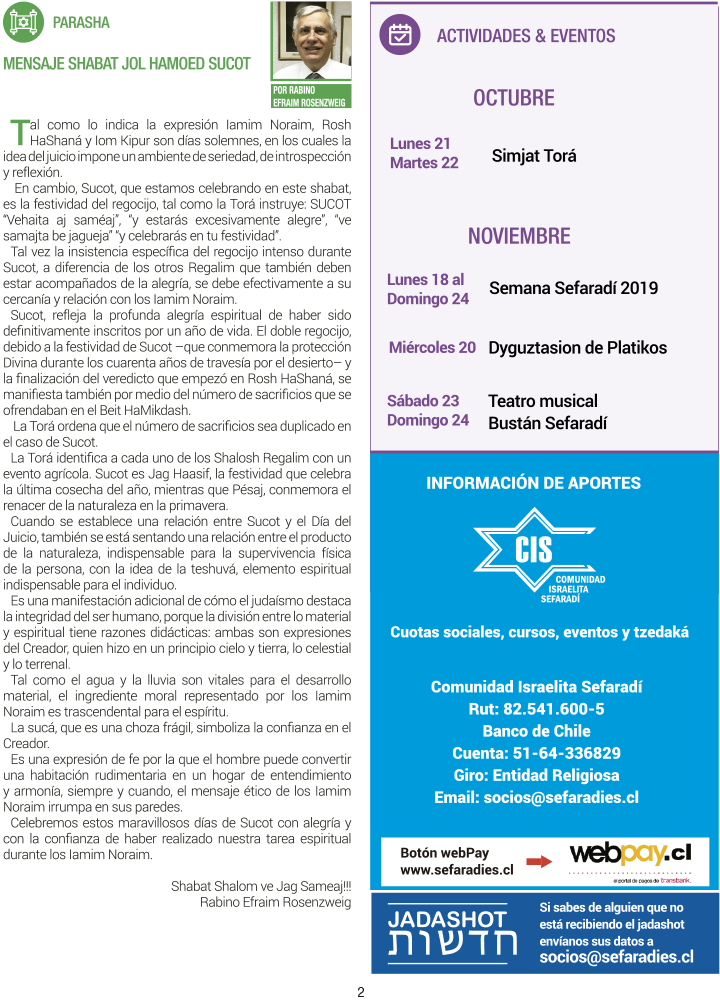 Mensaje Haazinu / 11 TISHREI 5786 / Encendido de vela: 19:29 hrs. - Havdalá: 20:25 hrs. / Kabalat Shabat 19:00 hrs.