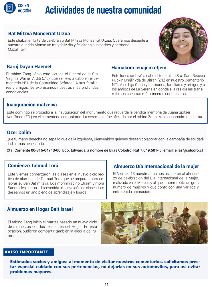 Mensaje Haazinu / 11 TISHREI 5786 / Encendido de vela: 19:29 hrs. - Havdalá: 20:25 hrs. / Kabalat Shabat 19:00 hrs.