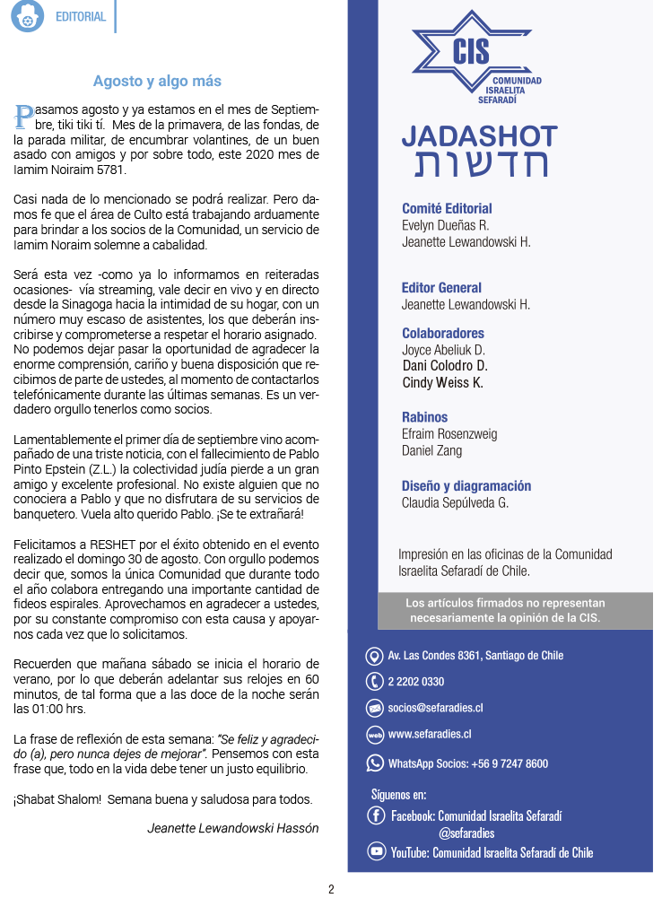 Mensaje Haazinu / 11 TISHREI 5786 / Encendido de vela: 19:29 hrs. - Havdalá: 20:25 hrs. / Kabalat Shabat 19:00 hrs.