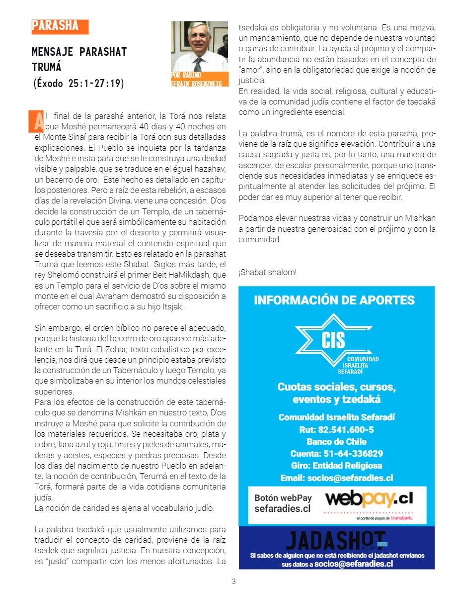 Mensaje Tertzave / 10 Adar 5786 / Encendido de vela: 20:03 hrs. - Havdalá: 20:57 hrs. / Kabalat Shabat 19:00 hrs.