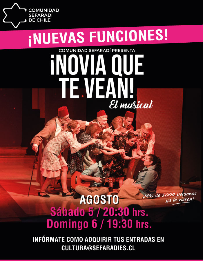 SOLICITA EL LINK PARA ADQUIRIR TUS ENTRADAS AL EMAIL: cultura@sefaradies.cl