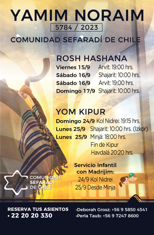 A continuación descarga las cartas justificativas de ausencia a clases o trabajo para Yamim Noraim. Gestión realizada cada año por nuestro Rab Daniel Zang, para que todos los judíos de Chile puedan participar de estos días, sin preocupación por justificar en sus trabajos o casas de estudio.